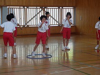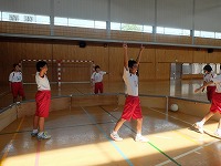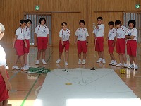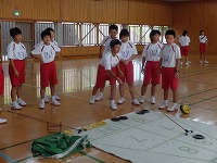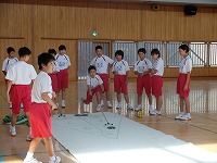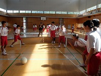 9:30 体育館全面を使ってニュースポーツ3種目をしました。