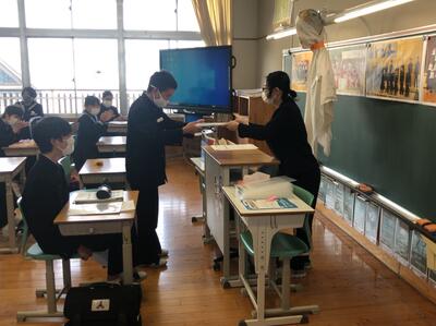 学活の終盤は、通知表の配付となります。