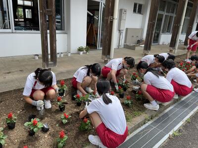 梅雨の晴れ間を利用して学校花壇にサルビアの苗を植え付けました。生徒たちも不慣れななりに楽しみながら作業を手伝ってくれました。このような活動も、一生懸命に取り組んでくれる生徒たちです。