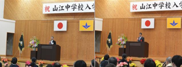 内山 山江村長からは、村の宝である新入生へ向けて、心強い来賓あいさつをいただきました。また、村本校長先生からは「新一年生を心から歓迎します」というお話とともに、これからの中学校生活に向けた力強い励ましの言葉が贈られました。