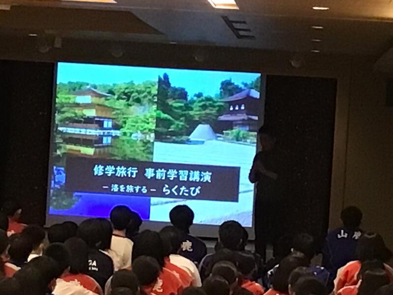 明日はいよいよ班別自主活動です。各班が計画した行程を協力して回っていきます。明日の活動が充実したものとなるよう、事前学習を行いました。講師の先生の軽快な話ぶりに引き込まれ、楽しく学ぶことができました。