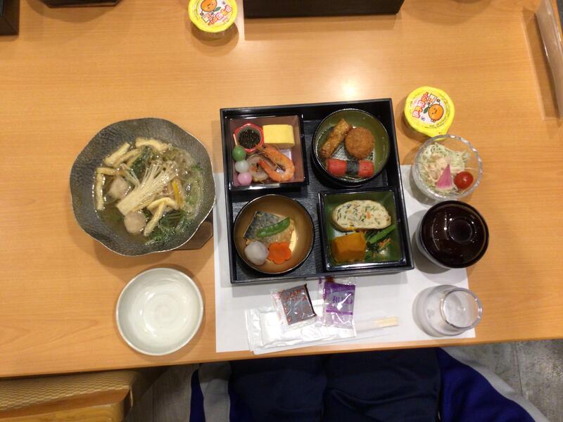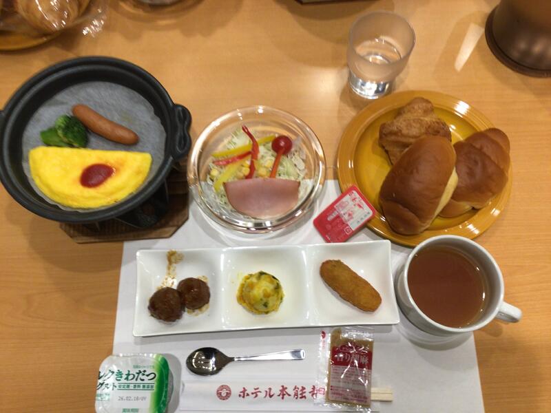 雪がちらほら舞う中、ホテルに到着しました。着替えを済ませ夕食です。