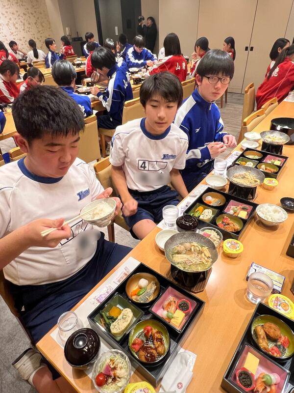 1日の疲れをを感じさせない食べっぷりです。おひつが次々に空いていきました。明日に向けて栄養補給ができました。