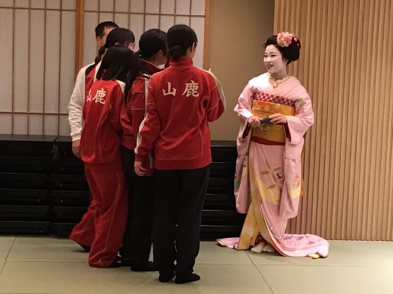 夕食後は、舞妓鑑賞会です。自主活動に続き、本物に触れる学びの機会です。