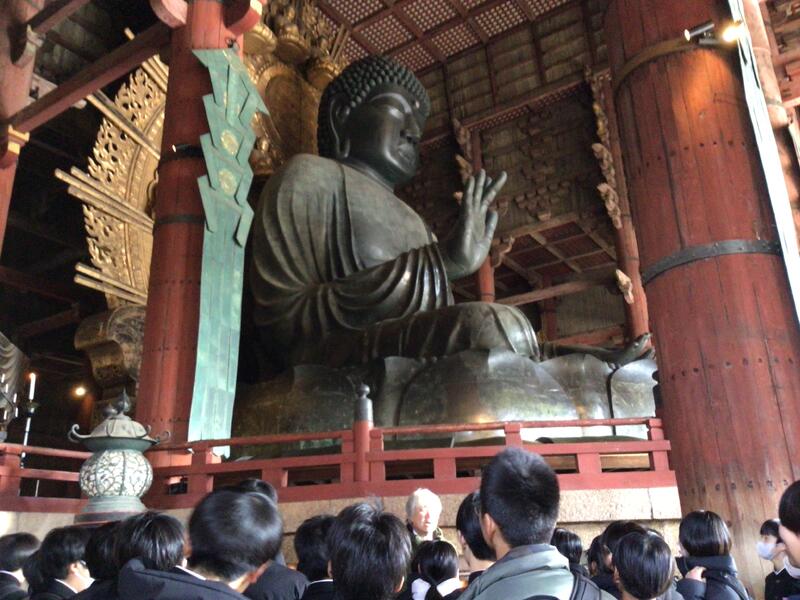 朝食を終え、修学旅行最後の学びの見学地、奈良公園、東大寺に向かいます。