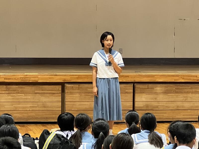 全校生徒の前で、発表するのは緊張したと思いますが、一生懸命に発表する姿がとても素晴らしかったです。