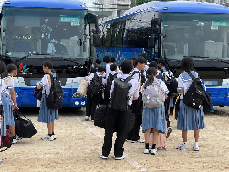 カルチャーセンター体育館で出発式を終え、これから、博多駅に向かいます。