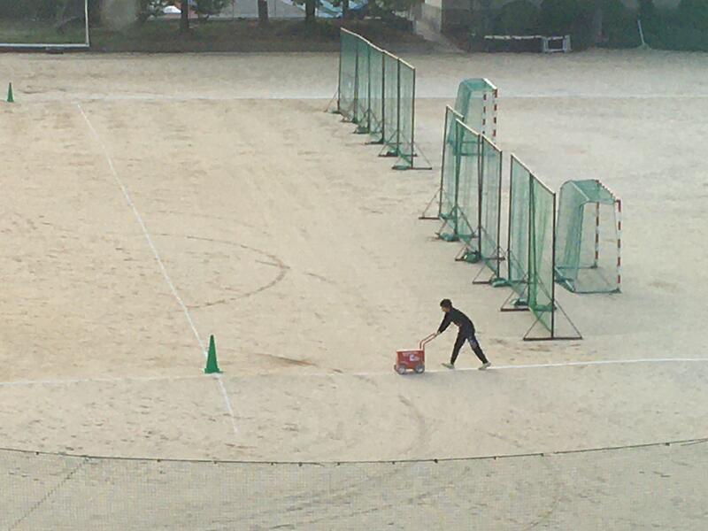 28日から体育大会の練習が始まることから駅伝部が、早朝からグラウンドのライン引きをしてくれていました。見えないところでも頑張る姿に感謝です。