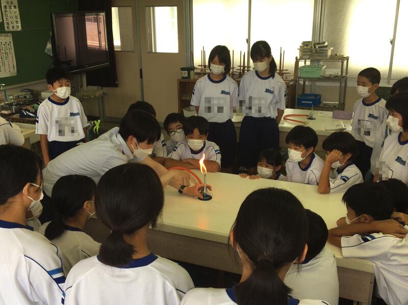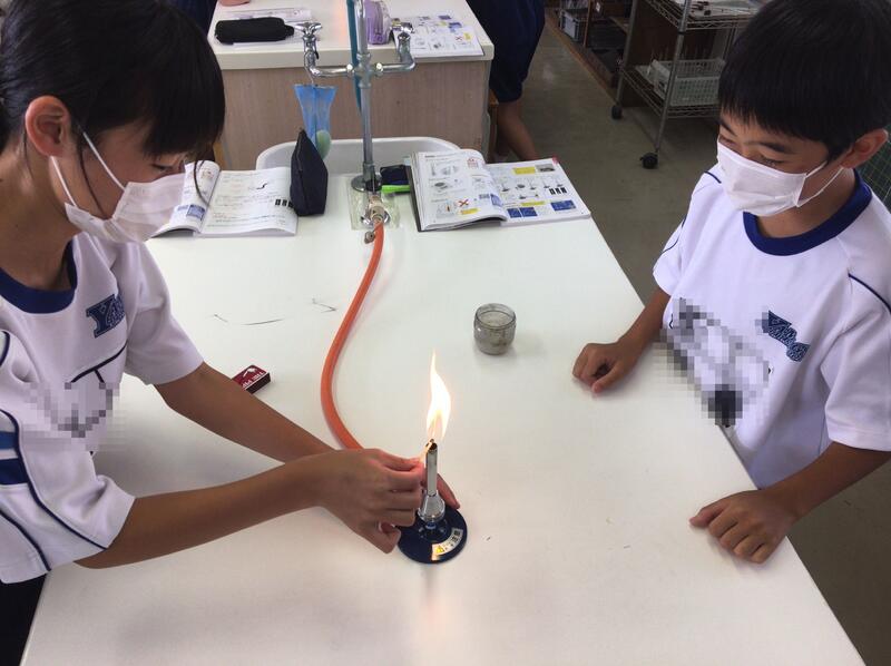 この後は、ガス調整ねじを回して、オレンジ色の炎から青色の炎に調整します。火を消すときは、火から近い順番にしめていきます。こんなポイントを生徒達は口ずさみながら実験していました。 ※その他のポイントを子どもさんに聞いてみたらどうでしょうか?