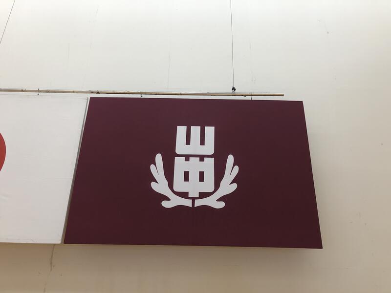(株)肥後銀行 様 (株)誠工社 様より体育館の校旗をご寄贈いただきました。