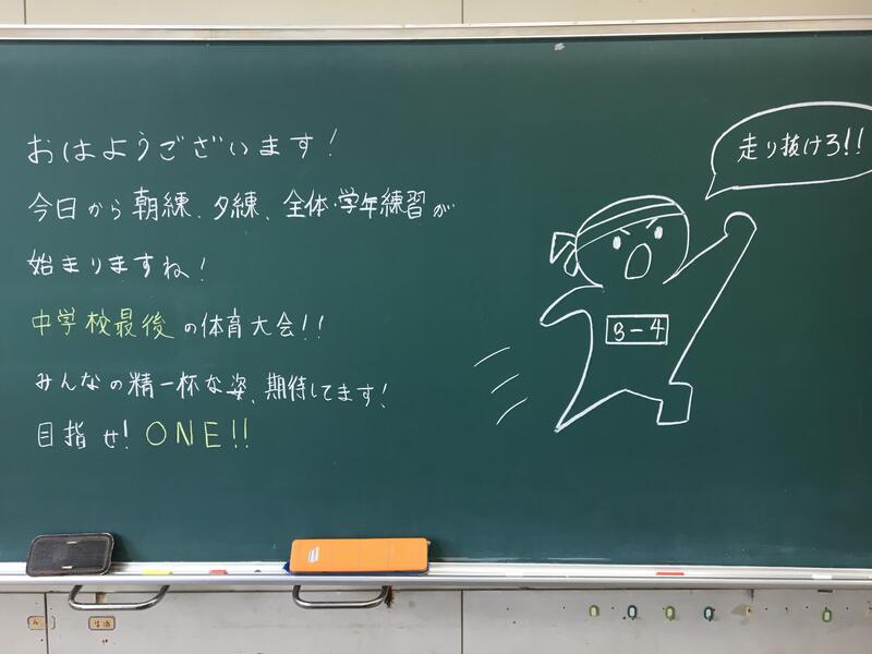 【4月28日(木)】朝の教室をぶらぶら。黒板に担任からのメッセージ発見。やるしかないでしょう!!!