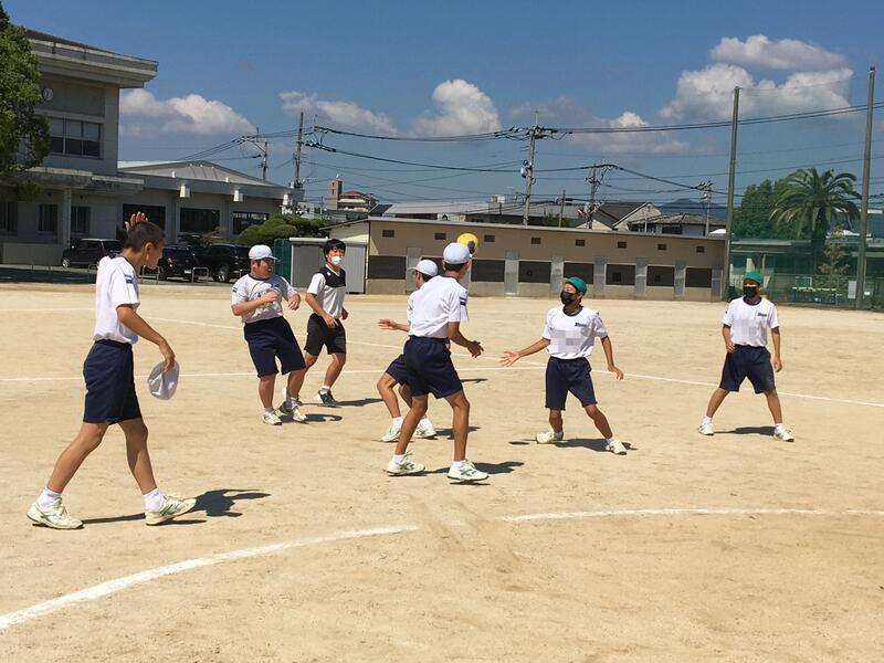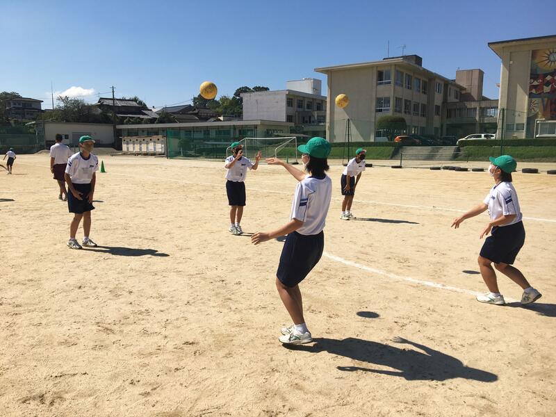 【体育です】ハンドボールの授業でした。今日が1時間目の授業ということでしたが、生徒達は楽しくかつ身体をしっかり動かしながら活動していました。ボールを怖がる姿もありましたが、磯部先生のアイディアある展開で、徐々にボールに慣れて、後半の試しのゲームを楽しんでいました。今後が楽しみです。
