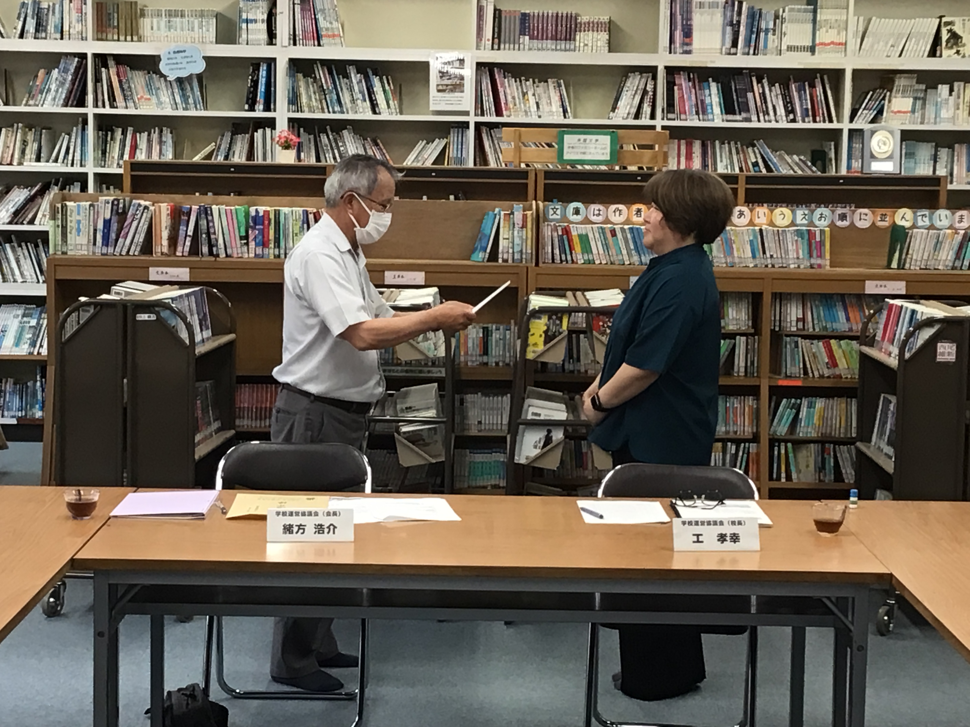 6月28日(金)、地域住民や保護者、教職員の代表で構成される学校運営協議会を行いました。新しく委員になられたPTA会長松本美恵さんに委嘱状が交付され、学校の運営とそのために必要な支援について協議しました。