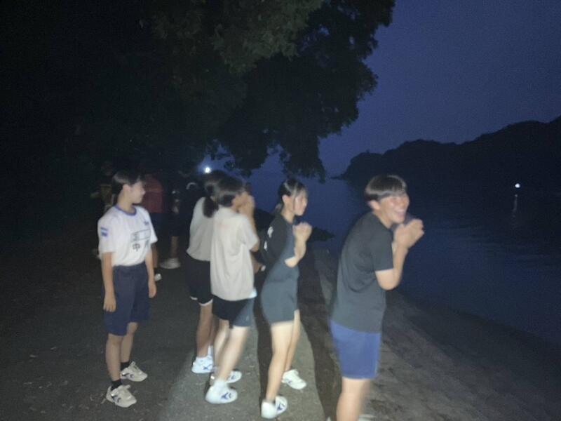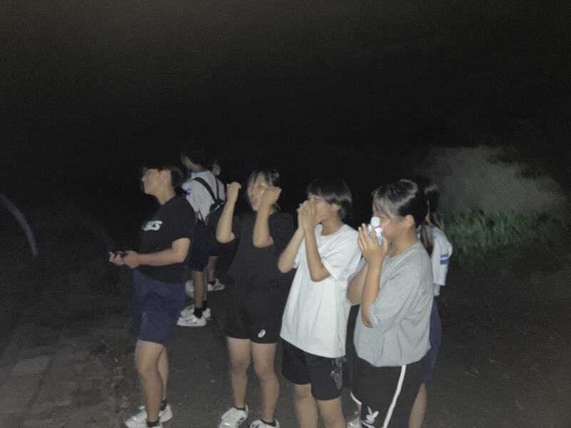 19時30分から「ナイトゲーム」を行いました。静まりかえった大自然の中を元気よく歩きました。星空を見ることはできませんでしたが、友だちとおしゃべりしながら楽しそうでした。