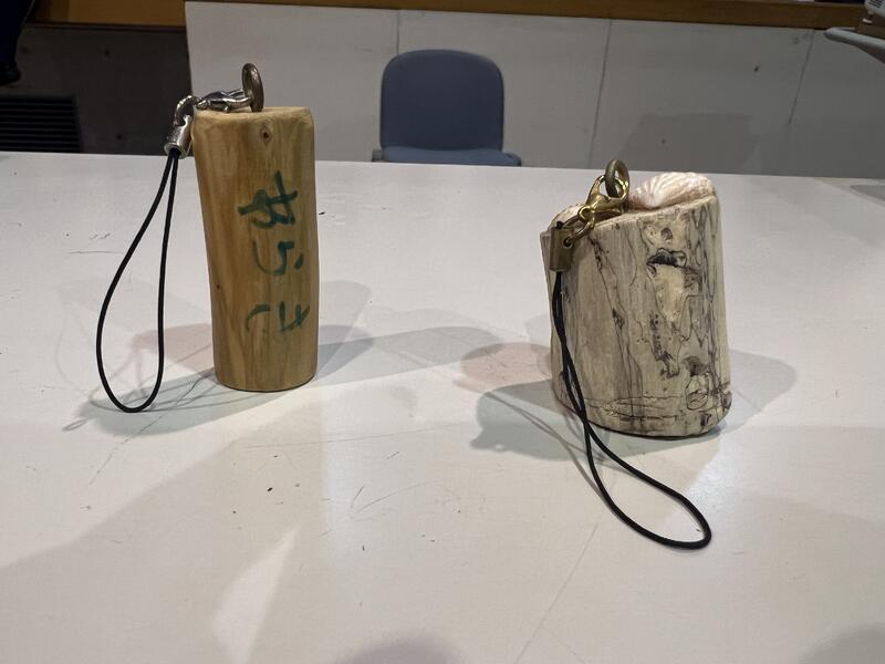 流木ストラップづくりでは、世界でひとつだけのストラップを作るために独自でデコレーションするなど工夫が見られました。いい作品ができたようです。