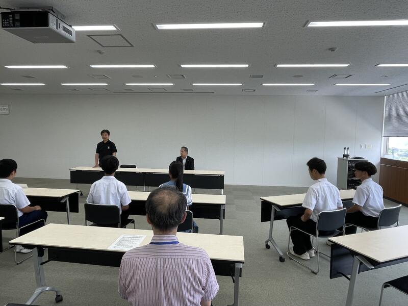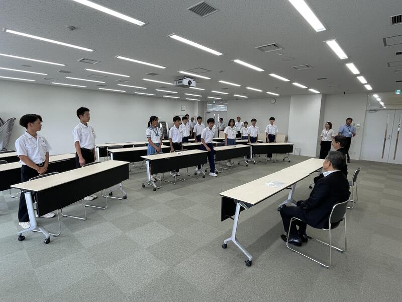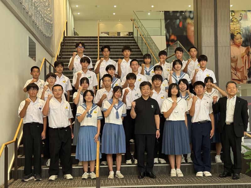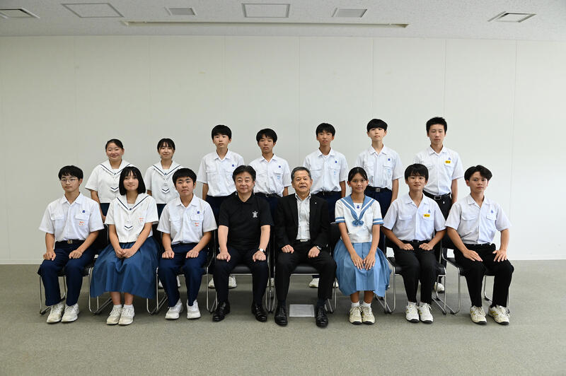 7月9日(水)、熊本県中学校総合体育大会(県中体連大会)に出場する市内すべての中学校から、団体競技のキャプテンが代表して早田市長様へ表敬訪問を行いました。