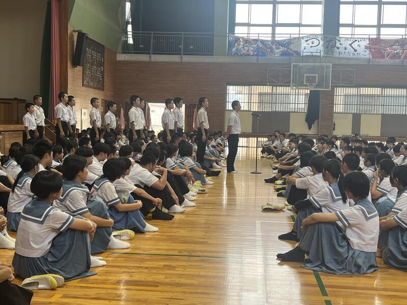 私たちは、「いじめや差別を絶対に許さないこと」、そして「みんなが仲良く、安心して過ごせる山鹿中学校をつくっていくこと」を目指していきます。これは、言葉だけでなく、日々の行動で示していきたいと思っています。学級会や集会を通して、一人ひとりが真剣に考え、感じたことはとても大切なことです。これからも、その思いを忘れずに、「お互いを認め合い、思いやりのある雰囲気」を、私たちの手でつくっていきたいと思います。