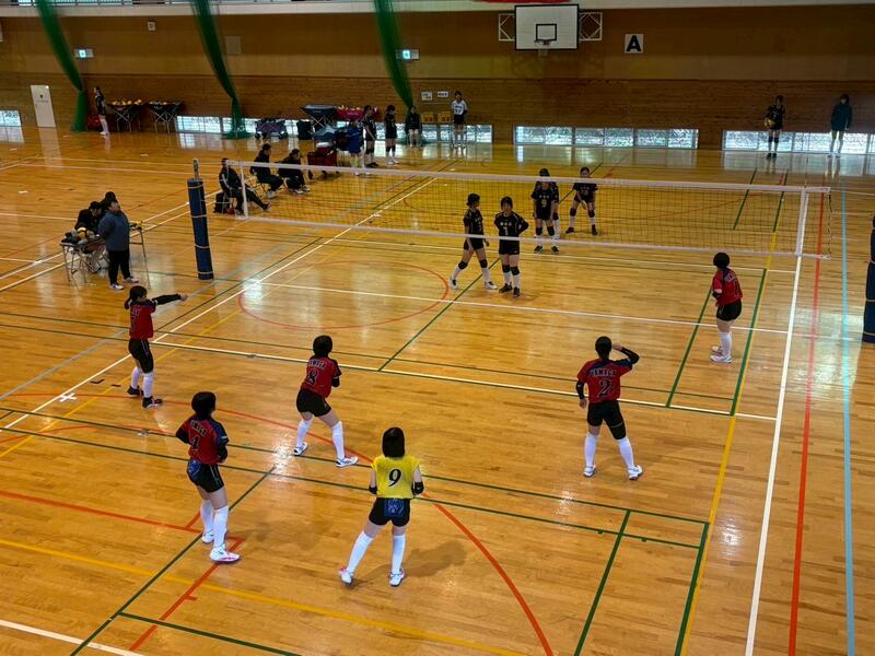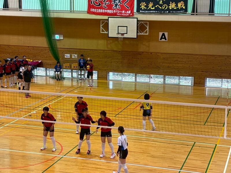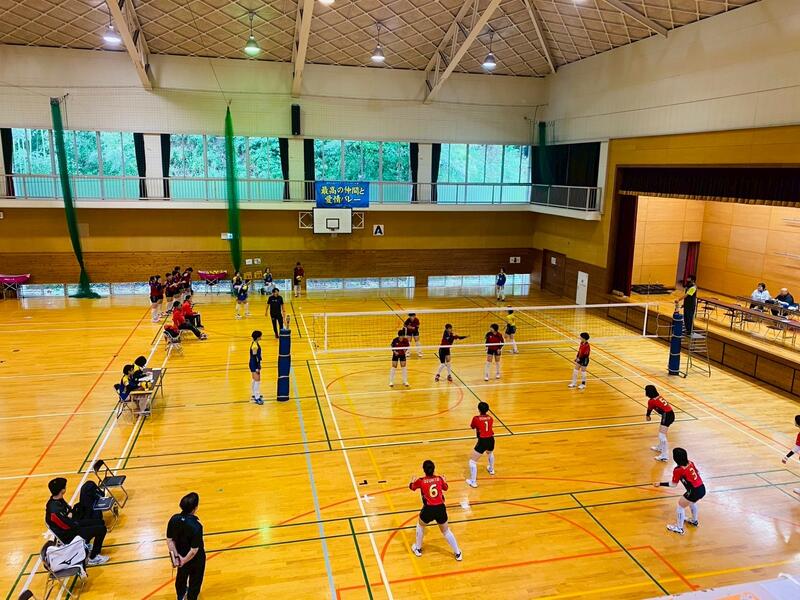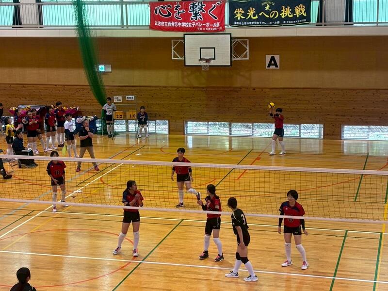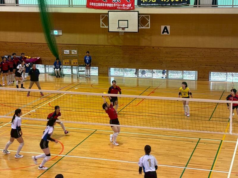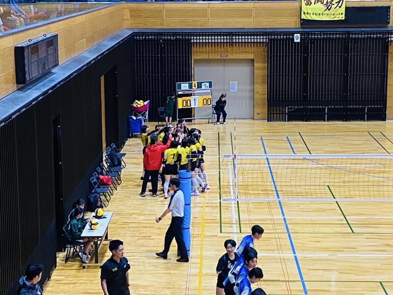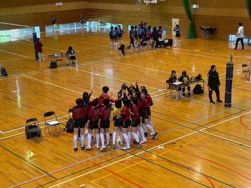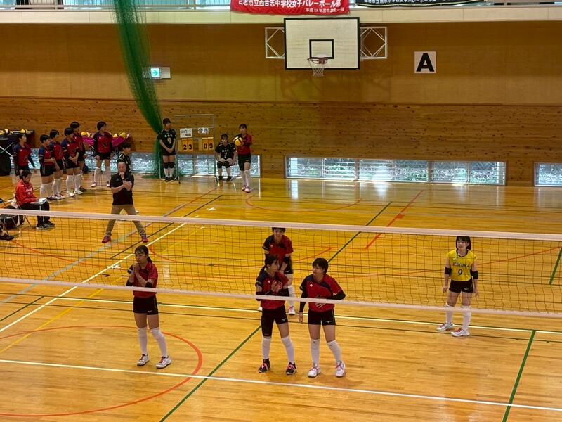 3年生のチームに囲まれる中、予選をリーグ1位で突破し、午後の順位別トーナメントへと進みました。迎えた決勝トーナメント1回戦の相手は「大津北中学校」でした。これまで、3年生主のチームで幾度となく戦い、多くの試合でフルセットまでもつれてきた相手です。そんな相手に新チームで挑むこととなり、相手の壁の高さを感じる1戦になり、セットカウント0対2で敗退することとなりました。