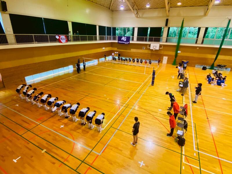 7月19日(土)・20日(日)に菊陽町総合体育館を会場として、「熊本県中学校総合体育大会」が行われました。各郡市の大会やクラブ予選を勝ち抜いた計16チームで熊本県のNo.1、そして、九州中学校総合体育大会の出場2枠をかけて争うこととなりました。当日は、女子バレーボールの会場で総合開会式が行われ、11時に第1試合開始で試合がスタートしました。