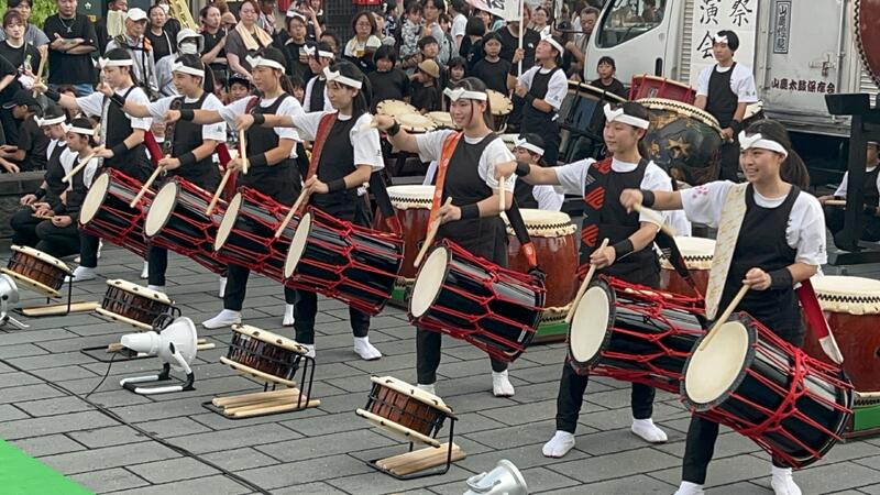 15日(金)は、15:40から八千代座で「灯籠まつり八千代座納涼公演」,18:50から西九日町にぎわい広場で「山鹿灯籠まつり~太鼓共演会」に出場しました。16日(土)は、15:40から八千代座で「灯籠まつり八千代座納涼公演」、18:40から山鹿小学校グラウンドで、山鹿太鼓さんの「SL」という曲をコラボで出場させていただきました。たくさんの祭りの人出に驚きつつも、精一杯の演奏を披露しました。