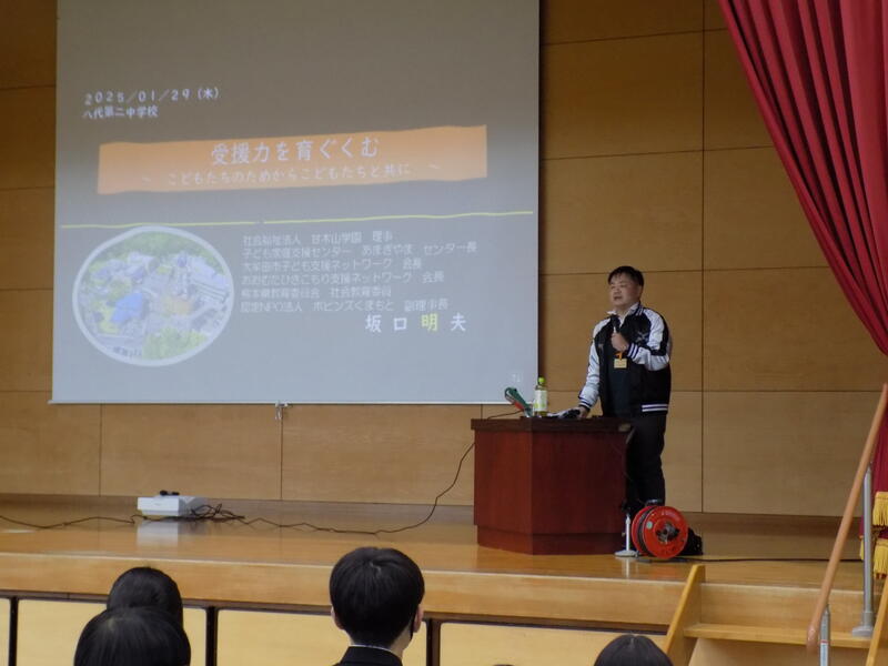 八代第四中学校で、拠点校部活動がスタートしました。競技種目は「男子バレーボール部」、「女子バレーボール部」、「相撲」の3競技です。『拠点校部活動』は、自分の学校に部活動がない場合、他校の部活動に入部できる制度で、今後二中でも随時実施していく方向です。なお、女子バレーボールについては、本校に部活動がありますので四中に入部することはできません。相撲は、四中以外、相撲部がありませんので、八代市全域から入部が可能となっています。入部できるのは1~2年生です。「詳しく知りたい」人は、下に保護者宛の通知文がありますので、ご覧ください。男子バレー部、相撲部に入部を希望する、話を聞いてみたいという場合は担任の先生へ連絡をしてください。