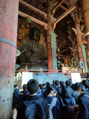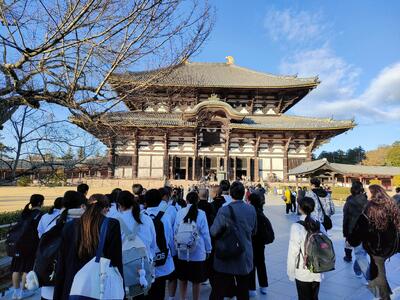 東大寺では、奈良の大仏に参拝しその大きさに感動しました。