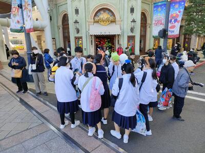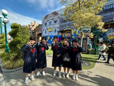 修学旅行最終日は、みんなが待ちに待ったユニバーサルスタジオジャパンでした。天気も良く、寒さもそれほど気にならない最高の気候の中、アトラクションやショッピングを楽しみました。