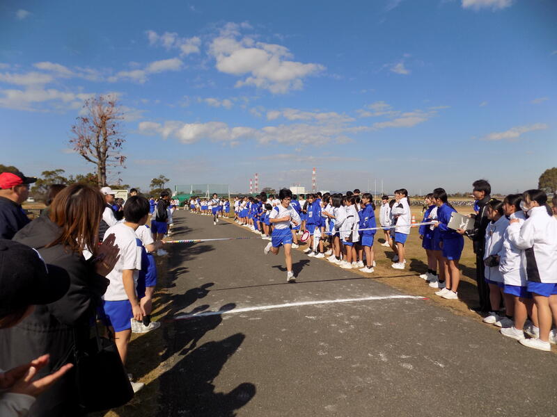 晴天で冷え込みもなく、絶好のコンディションのなかで男女の長距離走(2.7km)とクラス対抗の駅伝競走を行いました。