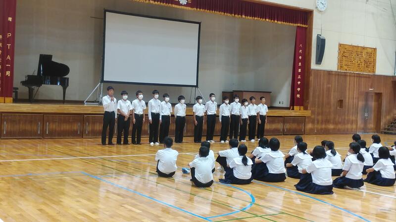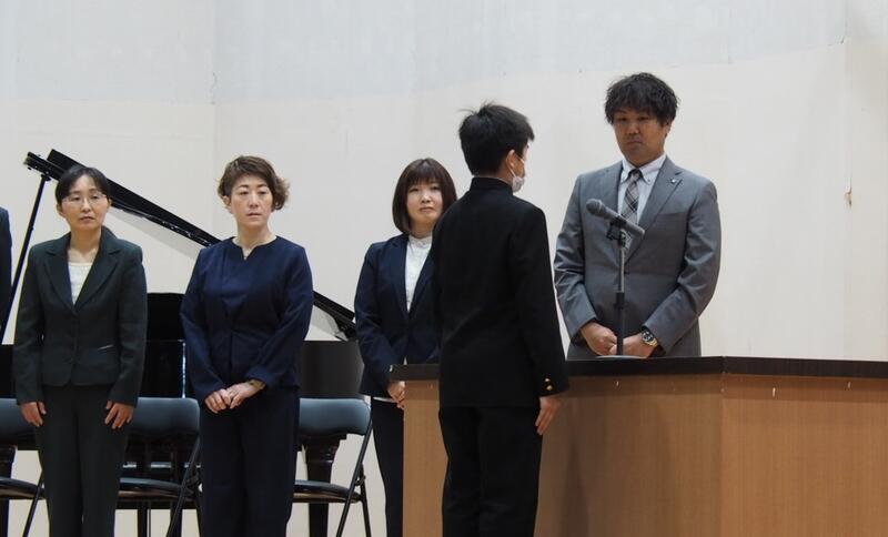 今回は、男子ソフトテニス部、読書感想画コンクールなどの表彰がありました。
