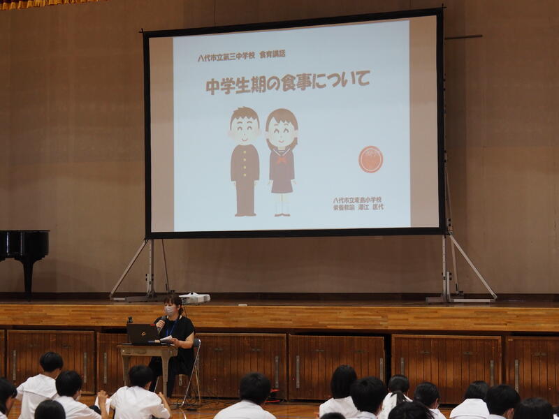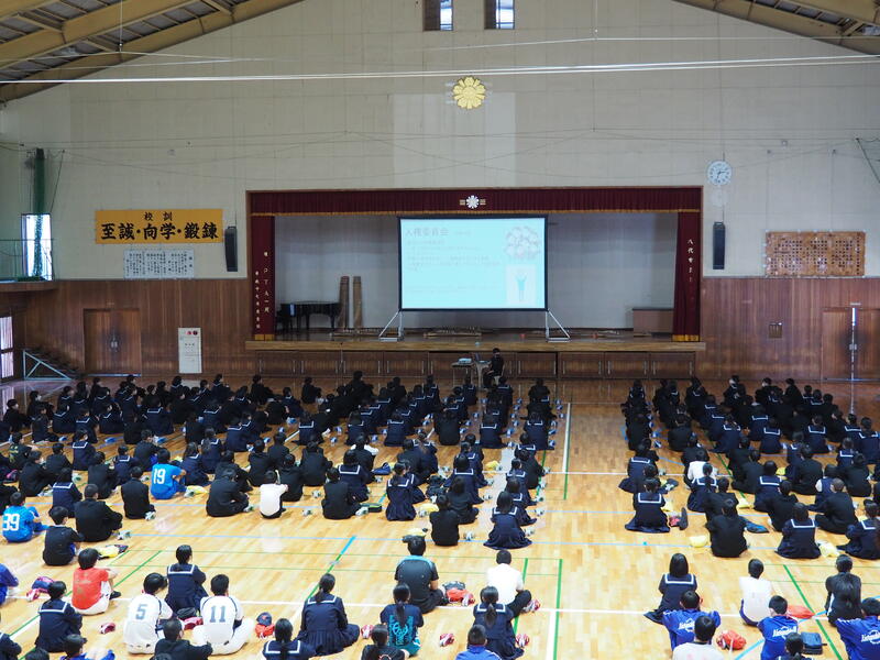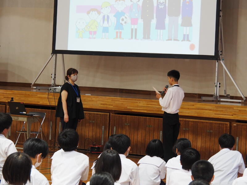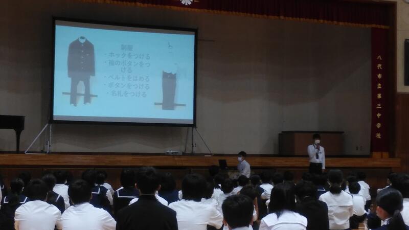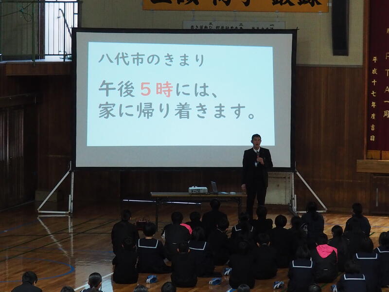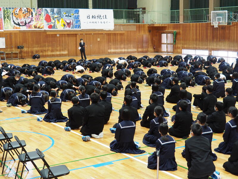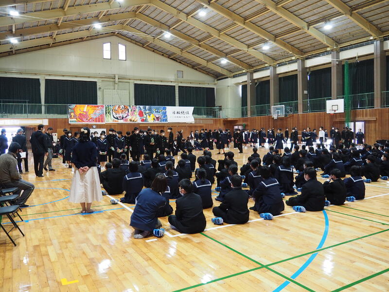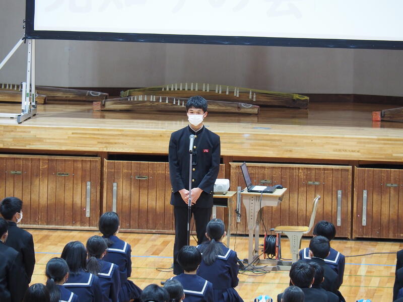 また、3年生は「文化発表会の劇の取組」、2年生は「修学旅行の態度」、1年生は「いきいきサロンの取組」を振り返りながら「人のために頑張ることは、最後は自分に返ってくる、そして成長につながる」という話もされました。