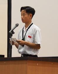 その後、各学年の代表者の作文発表がありました。今回は新生徒会長・副会長と、旧生徒会長の3人がそれぞれの立場から、この学校のこれからについての思いを発表しました。