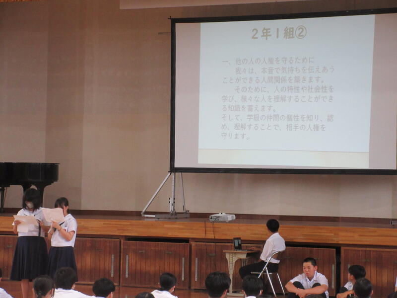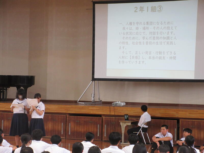 各学級の人権宣言を発表しました。