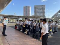 本校2年生33名は、本日8時27分に八代駅を笑顔で出発し、新幹線の車内で弁当をいただき、予定どおり12時に新大阪駅へ到着しました。