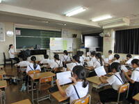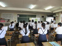 10月7日午後、郡築小学校および昭和小学校の6年生38名が体験入学のため本校を訪れました。児童は2班に分かれて「音楽」「英語」の授業を体験し、中学校の授業の雰囲気に触れました。参加した児童からは「楽しかった」「中学校への不安が少し解消された」との声が聞かれ、意義のある交流となりました。来年度の入学を心よりお待ちしています。