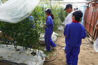午後は、ミニトマトのハウスを見学し、トマトづくりや八協連の仕事について質問を行いました。生徒からは、