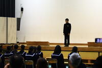 3年生の発表では、進路選択の時期にある3年生の苦悩や迷いを未来の姿と比べながら、夢や希望を持ち毎日を送ることの大切さを表現した劇で、ユーモアを交えながら見るものをうならせる演技の連続でした。