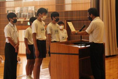 7月9日(金)の全校集会で、表彰を行いました。今回の表彰者は以下のとおりです。