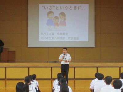 次に、防災担当の濵田先生から「いざというときに…」というタイトルでお話がありました。