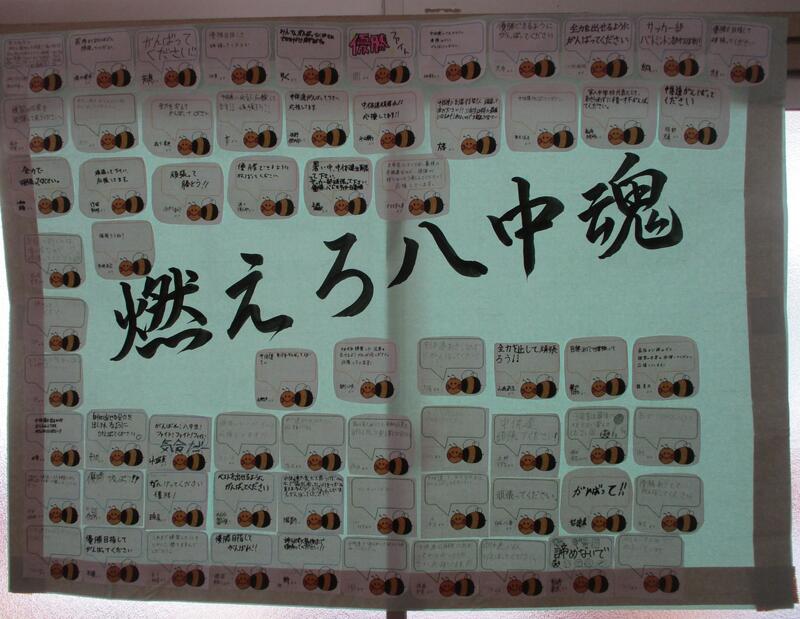 また、生徒昇降口には、一人一人が選手に向けて書いた応援メッセージが掲示されており、学校全体で心をひとつにして大会を盛り上げています。