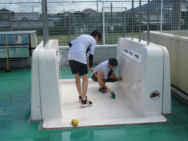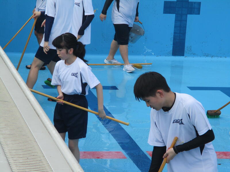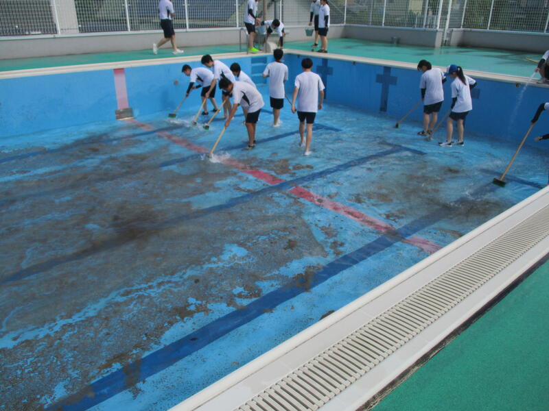 最後に掃除を担当した1年生の頑張りもあり、プールは見違えるほどきれいになりました。