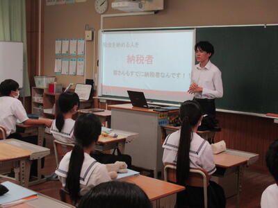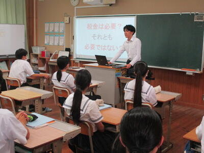 7月8日(火)5時間目に、3年社会科の授業の一環で「租税教室」を開催しました。