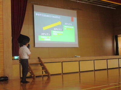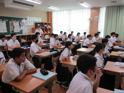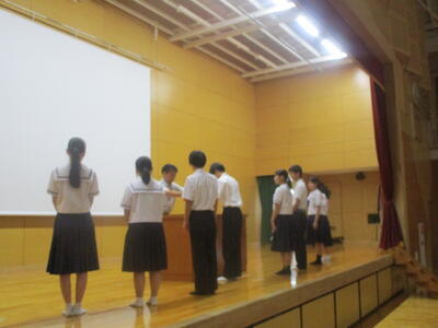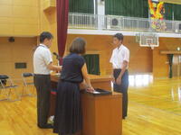 その後、校長先生から、1学期始業式の際に話された「夢を叶えるための3つのステップ」の再確認と、1学期終業式という節目にあたって「振り返りの重要性」について話しがありました。最後に、「命」「警察」は絶対にしないこと、2学期始業式の日を70名全員が元気に迎えてほしいことをお願いされました。