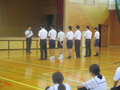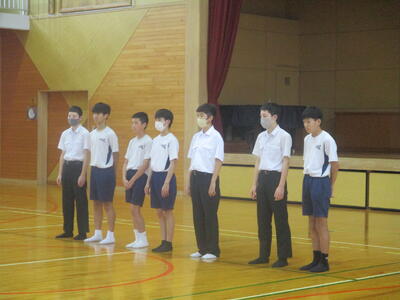 県中体連の推戴式がありました。八中からは、バドミントン部男子が出場します。