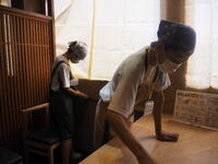 柄杓で水を掛けてもらっています。(気持ちイイ)
