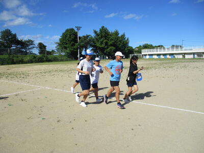 7月22日(月)から夏休みが始まりましたが、10月16日(木)に開催予定の八代中体連駅伝競技大会に向けての練習がスタートしました。八中代表として、男子12名、女子10名、合計22名の選抜されたメンバーで朝7時40分から練習を行っています。今年の夏も猛暑続きで朝から暑いですが、熱中症対策を万全にして練習に励んでいます。