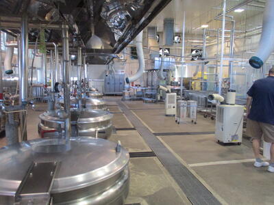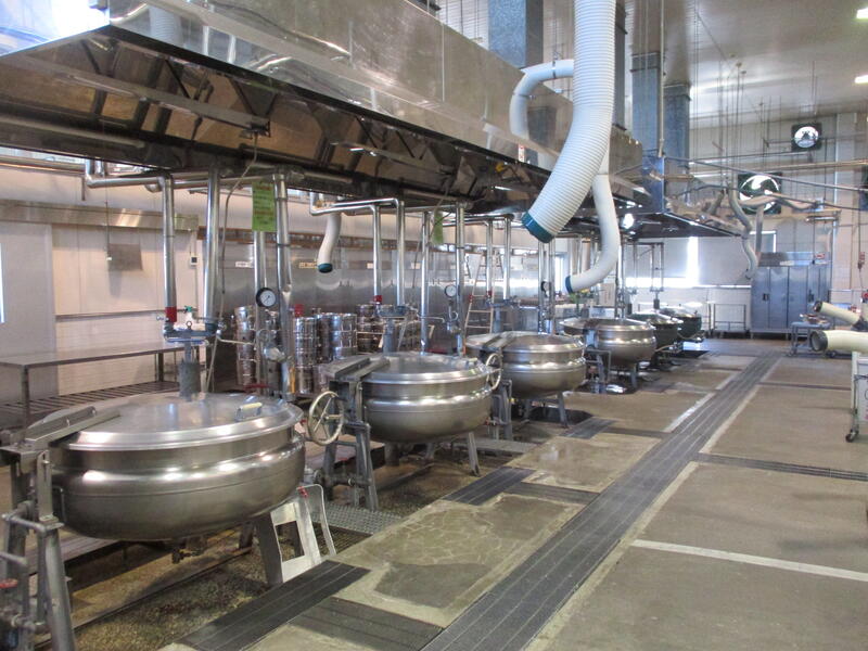7月29日(火)、本校の生徒や職員の給食を作っていただいている中部給食センターで、学校給食連携会議がありました。本校から校長と給食主任の上野先生の2人で参加しました。最初に施設見学がありました。普段は衛生面の管理から部外者は入ることができない調理場等を、夏休みということで特別に見学させていただきました。調理場に足をいれてすぐ目に入ってきたのが、大きな釜が何台も並んでいました。見学当日は天気もよくとても暑かったのですが、実際調理をしているときの調理場は40℃を超えることもあり、夏場は熱中症対策が必須で暑さとの戦いと言われました。