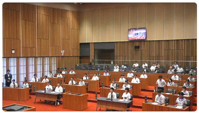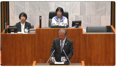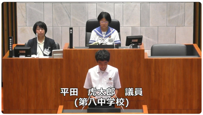 8月6日(水)、八代市議会本会議場において八代市中学生議会が開催されました。この中学生議会は、新市誕生10周年記念行事として平成27年度に初めて開催されました。その後、3年毎に開催されコロナ禍で1年延期がありましたが、前回は令和4年度に開催され、その後3年が経過したことから、市町村合併20周年記念事業として開催されました。市内各中学校から2名の代表生徒が参加し、議長・副議長・質問者となり中学生が議会の運営を行いました。学校毎に校区の市政に関する質問を行い、質問内容に応じて、市長、副市長、教育長、各部長等が答弁を行いました。