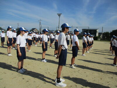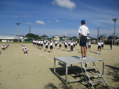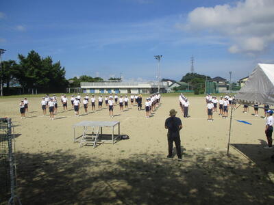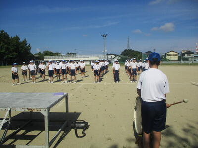 今年も残暑が厳しいことが予想されますので、練習計画を見直し全体練習等は、原則朝の1・2時間目に行い、練習内容によっては体育館で実施するようにしました。朝と言えどもまだまだ日差しが強く熱中症対策に十分気を付けながら活動しています。