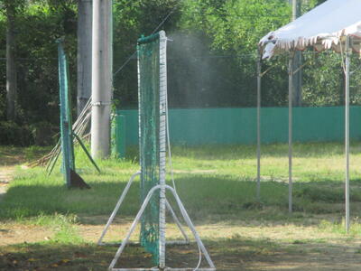 その熱中症対策の一つとして、PTAからミストシャワーを購入していただきました。練習の合間や休憩時間に火照った体をヒンヤリと冷やしてくれています。保護者の皆さんに感謝です!