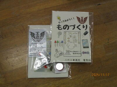 11月17日(月)の2・3時間目に、2年生において八代工業高等学校電気科による出前授業を実施しました。この取組は、文部科学省事業マイスター・ハイスクール事業の指定を受けている八代工業高等学校の電気科による電気教材の体験教室を通して、技術・家庭の技術分野で学習したエネルギー変換の内容を深め、電気に関する知識や技能に興味・関心をもたせることを目的に行いました。